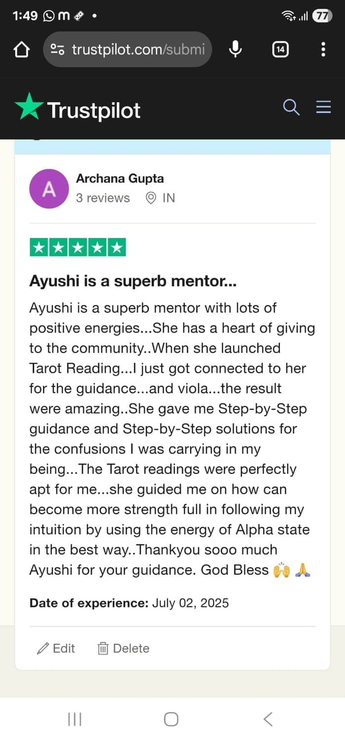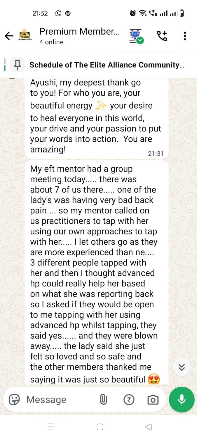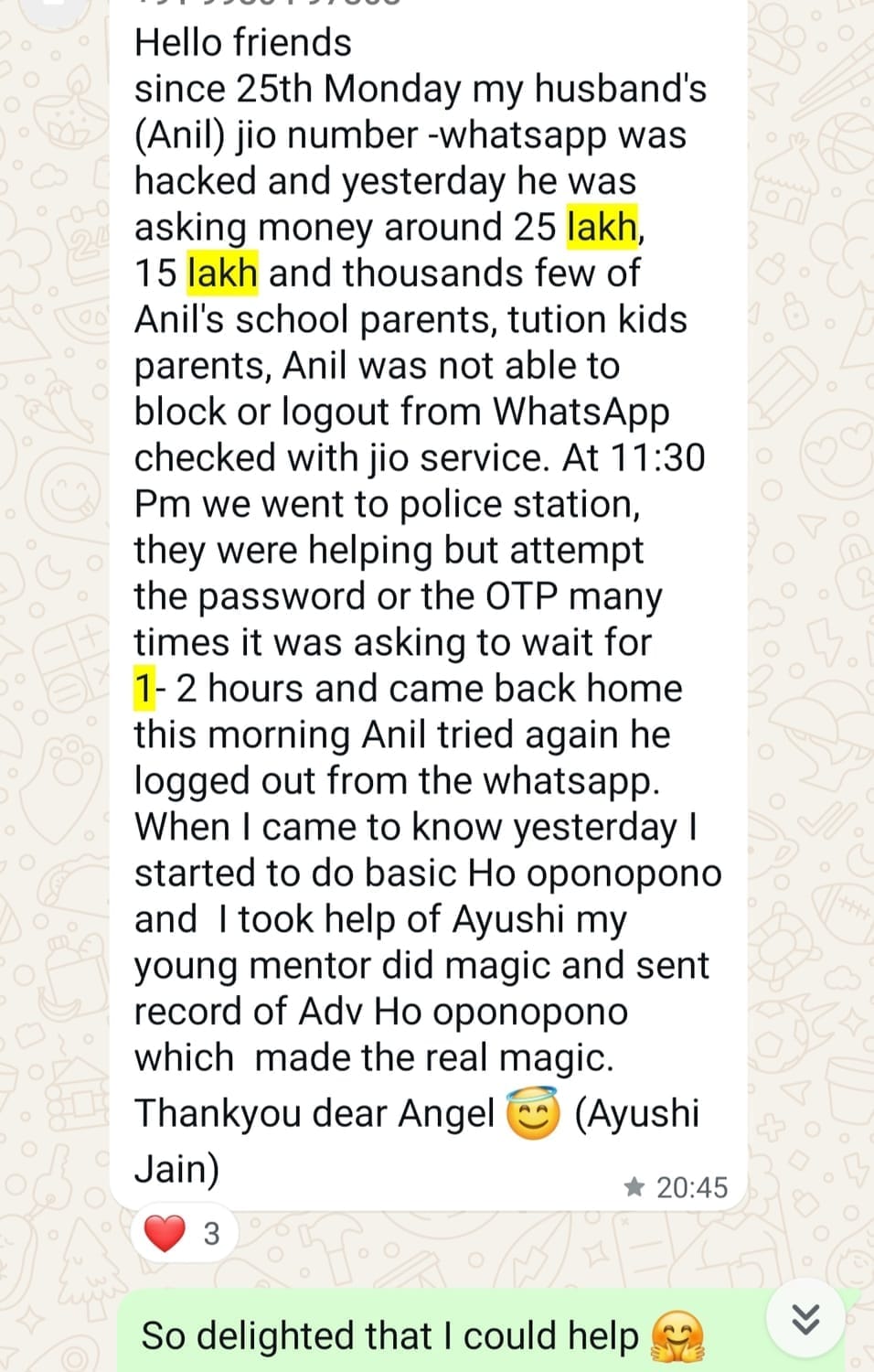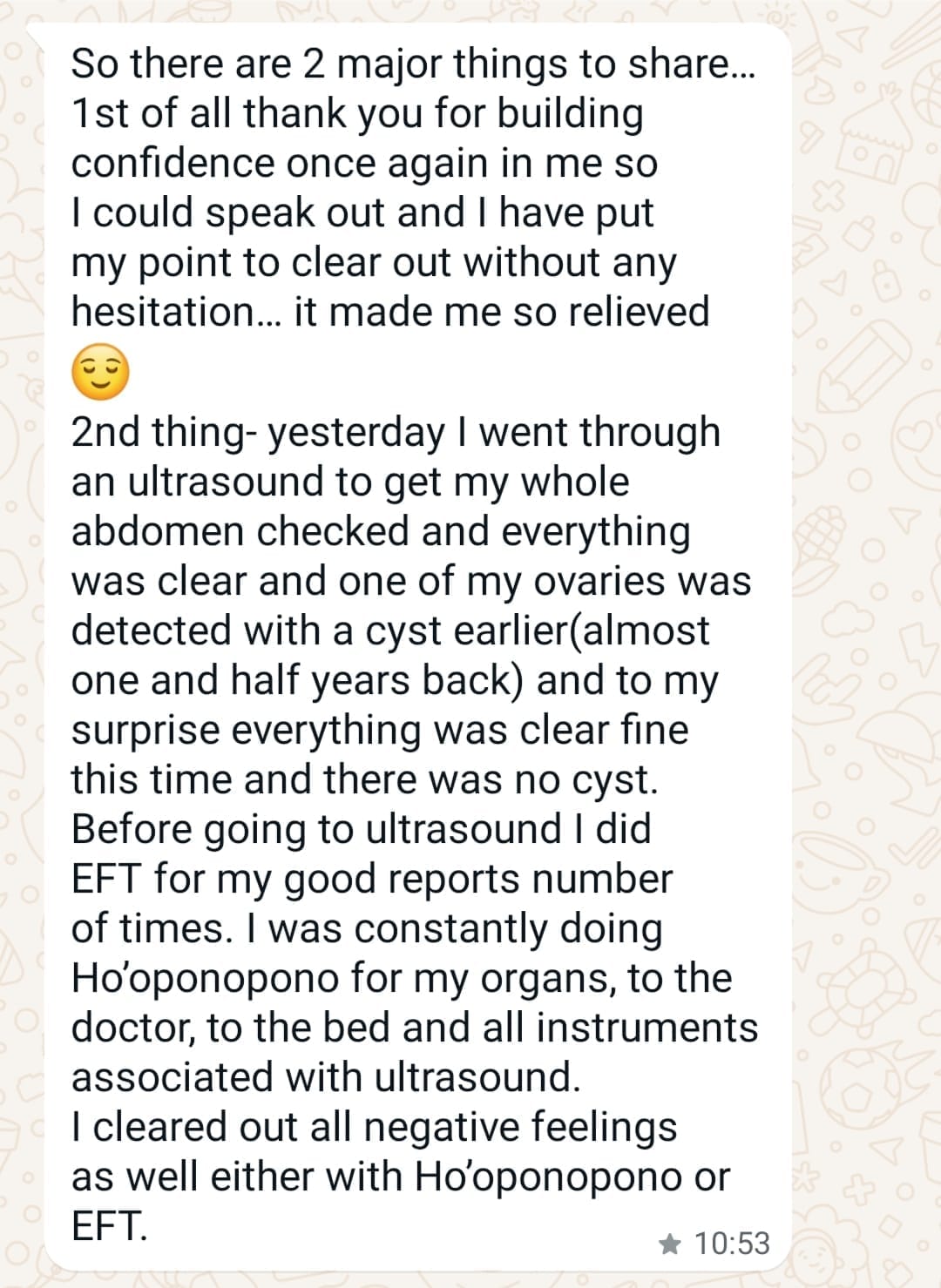 From healing her own pain to helping others do the same, Ayushi dove deep into the worlds of Ho’oponopono, EFT Tapping, Chakra & Aura Healing, Neuropsychology, and Energy Medicine, transforming over 1,000+ lives by guiding people to release past wounds, emotional baggage, and subconscious blocks.